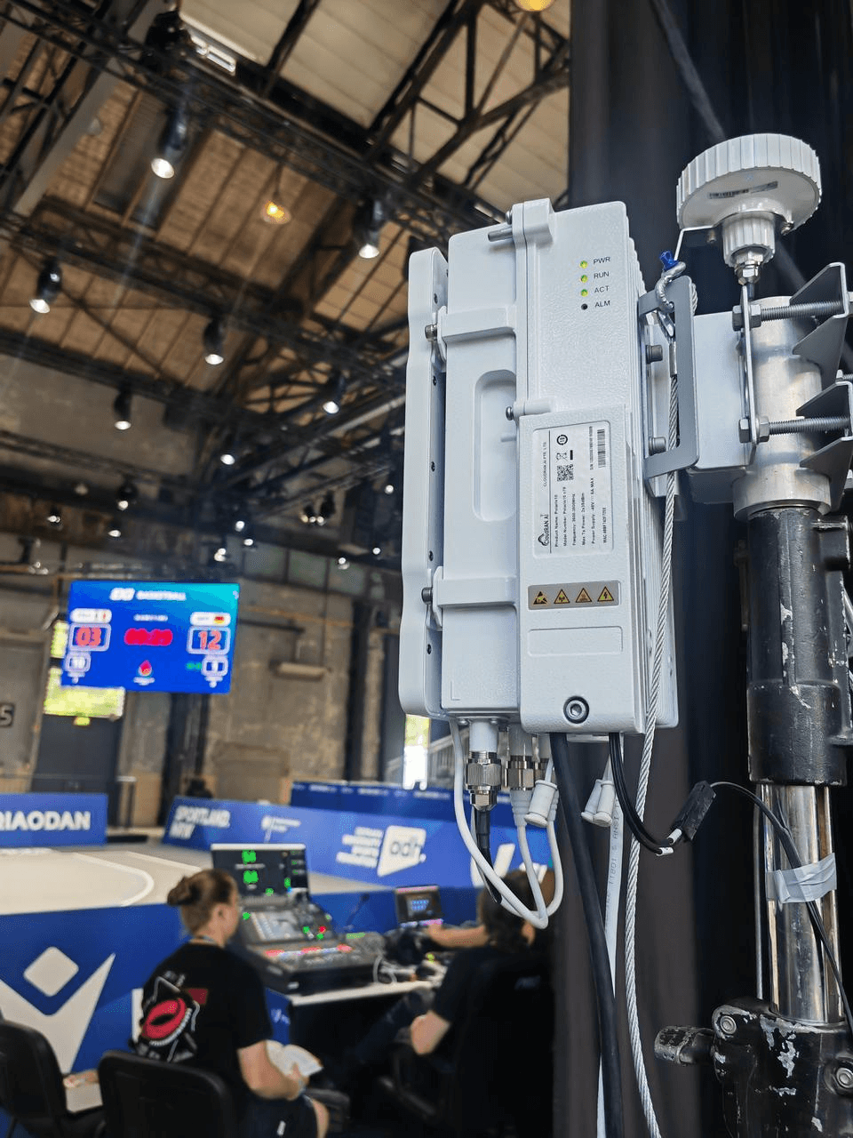 Over the course of the event, real-time streams were transmitted to the control center over the low-latency private 5G uplink, which kept the basketball broadcasts running flawlessly. Building on this success, CloudRAN.AI extended coverage to additional venues like Essen, showing how easily the private 5G units can be moved and redeployed.