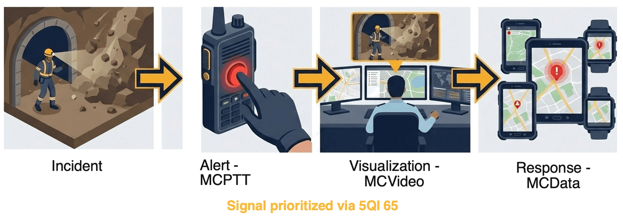 One example is smart mining safety, where teams rely on prioritized communications for:
