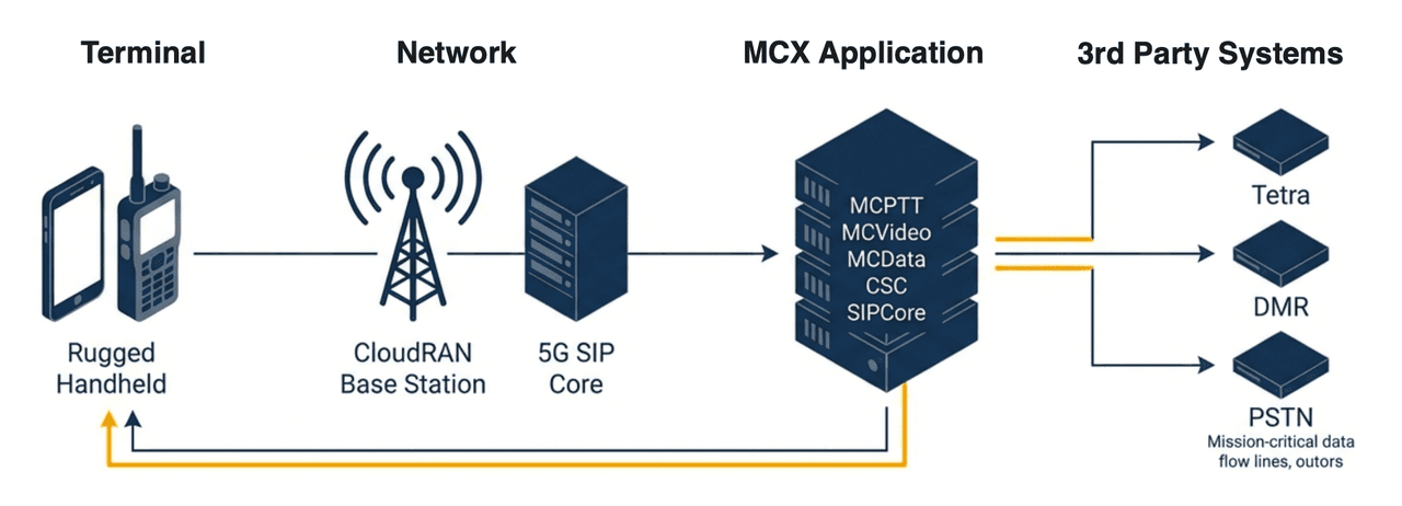 MCX is not a proprietary app. It is the global 3GPP standard for mission-critical communications, designed to evolve industries from narrowband voice systems (like TETRA/DMR) to broadband “voice + video + data” on a unified network.